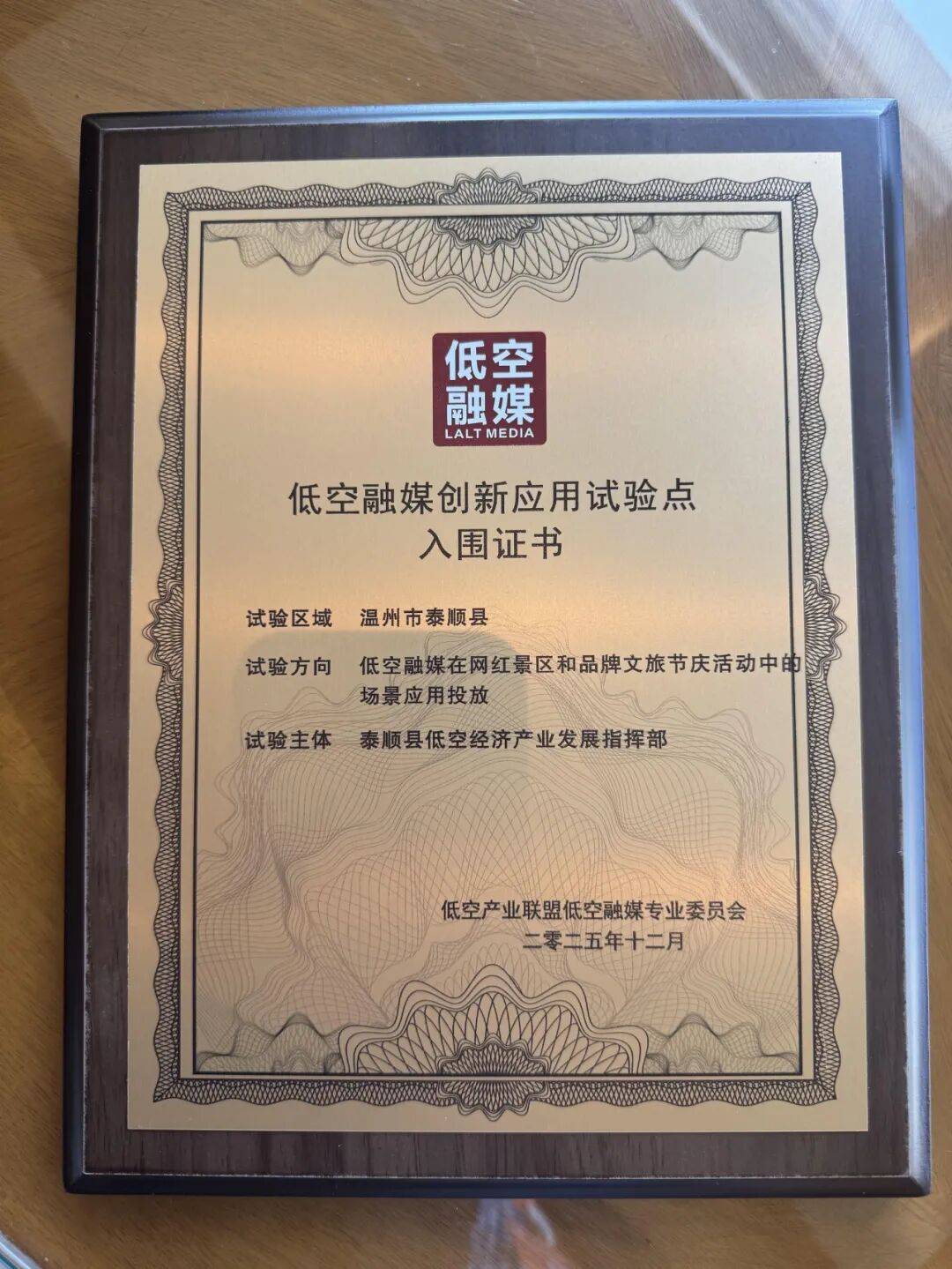 12月14日,2025中邦低空融媒大会正在温州召开。现场揭橥了低空融媒改进利用试验点第一批入围名单,系全市独一以县级为主体获此殊荣的县(市、区),为全县上下深刻施行“生态立县、旅逛兴县、财产强县”繁荣战术注入低空融媒新引擎。